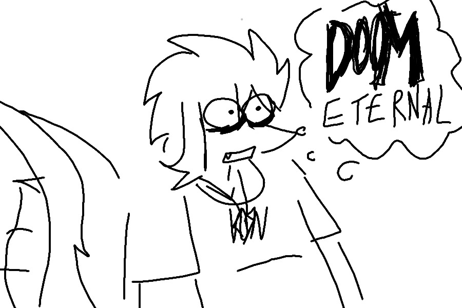 thirs redraw of da night oh yeah ohyeah im on a roll oh yeah. this is a redraw of dis right here. it was about animal crossing originally so i changed it to be about doom eternal specifically cuz no way yall dont remember doom crossing. doomguy and isabelle walked so barbenheimer could run |