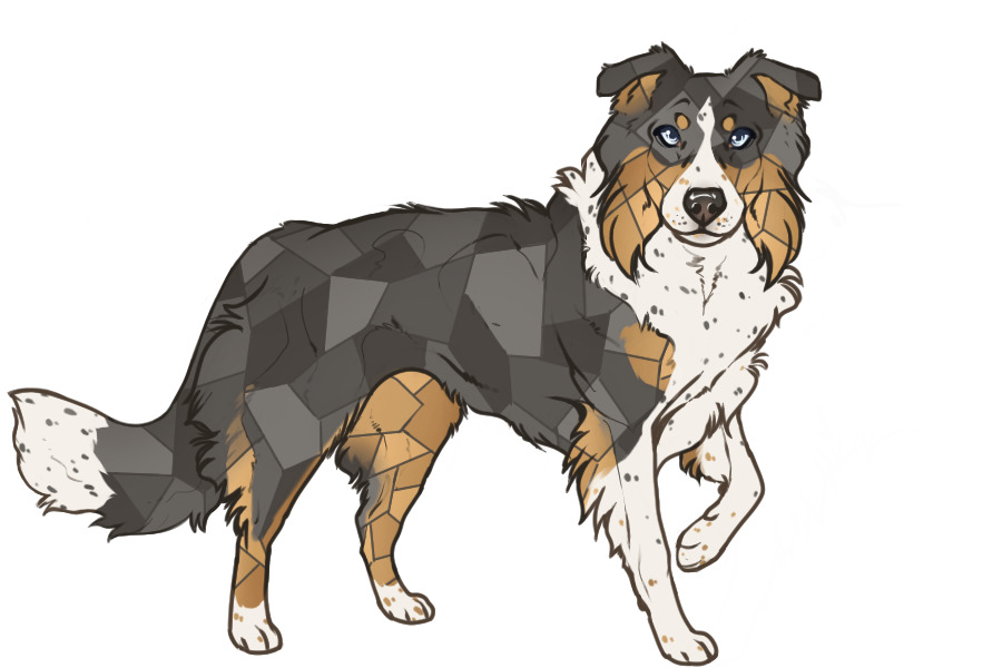 Adopted Owner: Parsnip Name: Gender: Height: 19 in Weight: 38 lbs Color: Blue and Tan Point Brindlemerle Ticked Irish White Genotype: atat BB cchcch dd EE hh Ii KbrKbr Mm sisi Tt UU ll Notes: Edits pass at a 15% rate. This collie may not compete in Conformation in the Title Program due to their edits. Spooky surprise passes at a 2% rate. October Discord Custom for Parsnip, with a spooky surprise - "Stained Glass" Brindlemerle! |