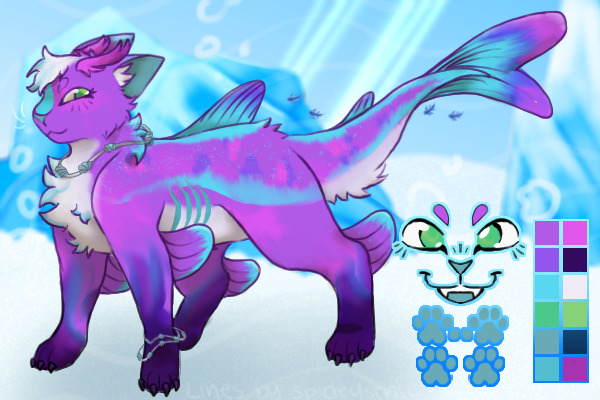 Description: [NR | NR | C | UC | R] Purple base with blue's, Pinks, and darker purple markings. With off white underbelly. Green eyes with soft lime green. Edits: [NR] Accessories, Visible Claws, Companions (there tiny but they are there), Eyelash edit, Antenna edit [C] Two-lobe ears/fins/tail, Heterochromia, Unnatural pupil shape, Ear size/placement edit, Min fur edit So sorry it took a while for me to post this but do hope you like them! |