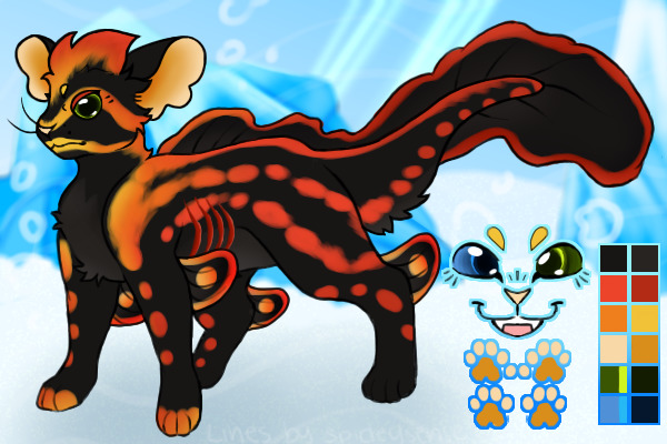 Description: [R/NR/UC/UC/C/C/UC] Black base with dark grey underbelly. Bright red patterning fading into orange and soft gold accents. Warm blue and vibrant green heterochromia. Edits: [NR] Whiskers, antenna edit, eyelashes, expression [C] Round ears/tail, two-lobe fins, eye shape edit, min fur edits, ear size/placement, heterochromia I really hope you like them! Ik they're a bit different. Guess the fish they were inspired by ^^ |