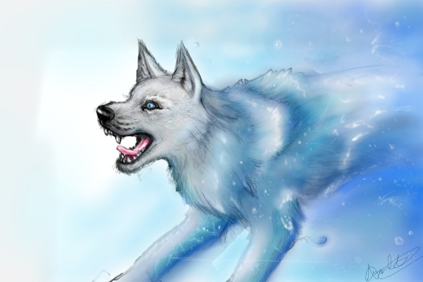 First time using oekaki, wanted to make a wolf/dog that looked like it was emerging from/made of water. |