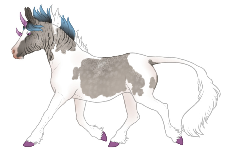 Due to their fey ancestry, it is not uncommon to see all sorts of fantastical colors accenting otherwise average equine coat colors. Often times these vibrant colors will appear as small ascents such as hoof coloration, or tinting marking that are normally white, but on rare occasions the bicorns base coat will be affected by the unique coloration.