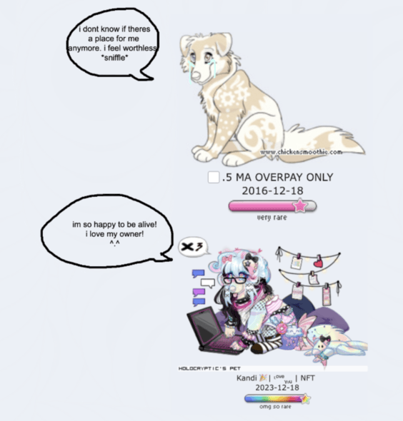So, what is the Equality trading guide? To simply put, it is a trading guide that believes all pets on CS are equal, and worthy of care. All pets are 1:1 in value with eachother, because they are beloved pets that simply want to love and be loved. All of these pets can love who they want, and be worth who they want. There is no shame in their pride! Even the tiniest rats to the fanciest OMGSRs, in the end, they are pets that deserve an equal amount of love. It is heavily advised you treat each and every pet of yours with kindness, like it has a soul.