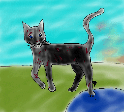 Appearance: black with dark blue eyes and scars EVERYWHERE!