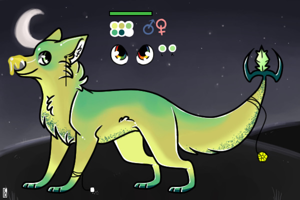Simas are cat/wolf creatures basically. Their paws resemble a wolves while their body structure could resemble a cat. Simas are also known as 'Sword Mammels'. This name comes from their tail. The tail is the most important part of a Sima's body. They resemble a sword most of all. They are thick and fluffy at the base and when the go down the tail, it gets thinner then widens into two tail guards like the guards on a sword. The jewel acts like the blade.
