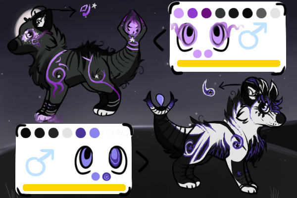 Simas are cat/wolf creatures basically. Their paws resemble a wolves while their body structure could resemble a cat. Simas are also known as 'Sword Mammels'. This name comes from their tail. The tail is the most important part of a Sima's body. They resemble a sword most of all. They are thick and fluffy at the base and when the go down the tail, it gets thinner then widens into two tail guards like the guards on a sword. The jewel acts like the blade.
