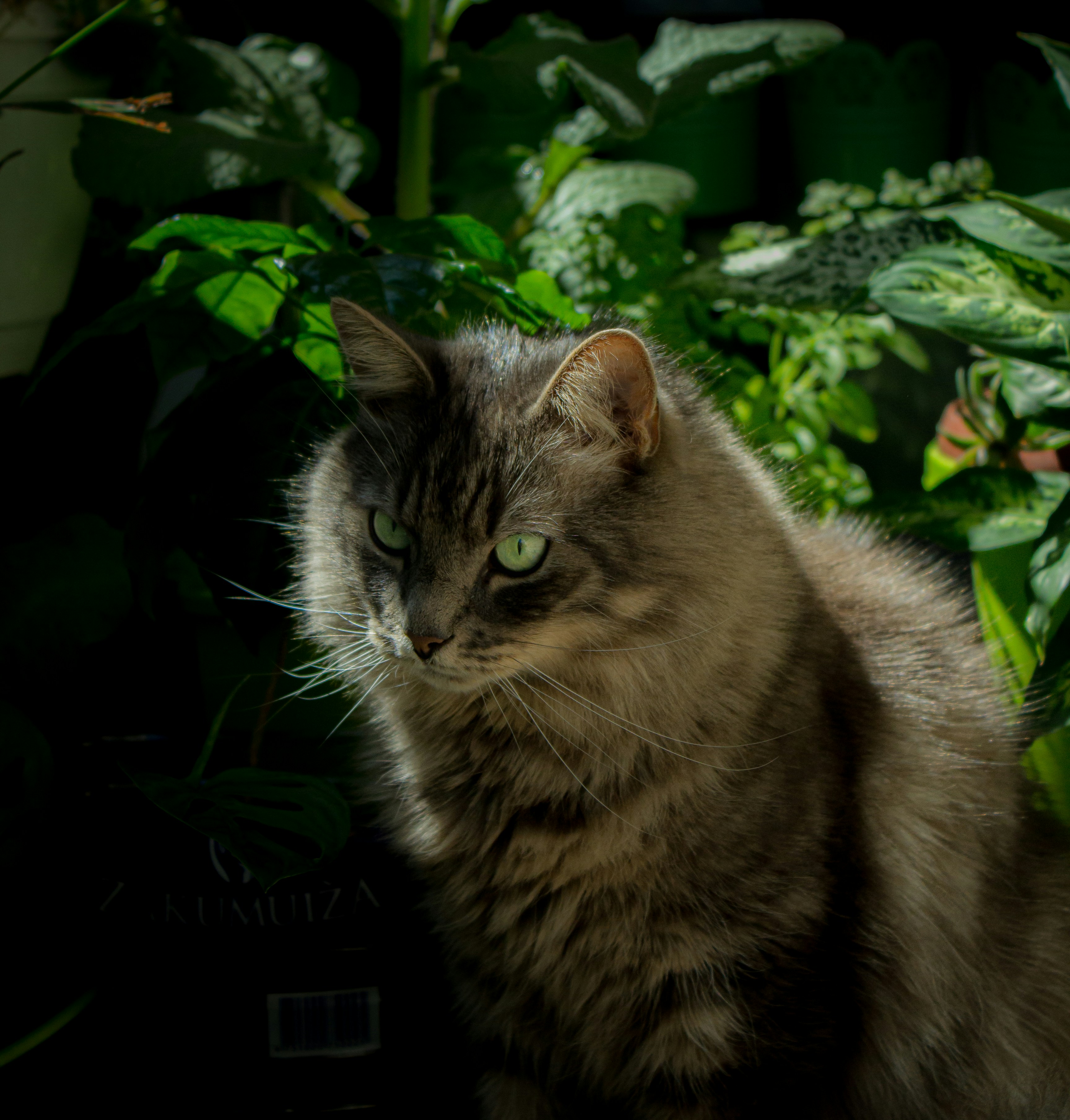 by Lokisaurus: black mackerel shorthair with low white and hazel eyes. | LL, B-, Xo-, D-, A-, Mc-, C-, Wsw
