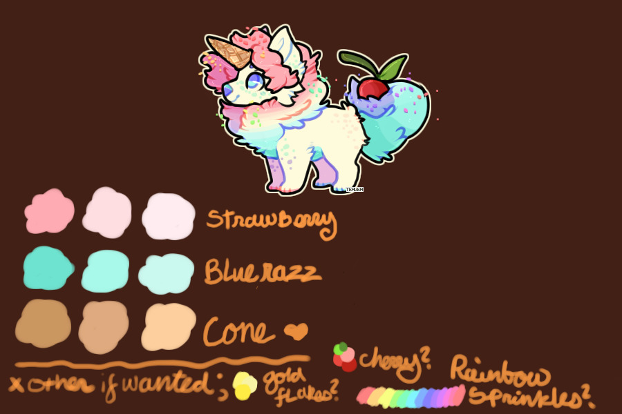 I added quite a few more colors in the pallete if you would like to add sprikles, gold flakes, or a cherry. I also got the idea of the dog having a cute ice cream cone horn! <3 you do not at all have to use all the colors, I just really wanted to give a big variety. ;ww; oh! and making them super fluffy would be so cute, too <3 thank you!