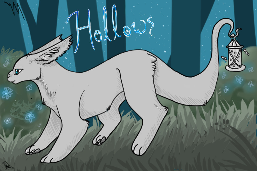 A Hollow is a quiet creature, often used in therapy for schools and hospitals. They are extraordinarily soft and gentle, and will never harm a soul. They always carry a lantern, though scientists are unsure why. Some have considered the possibility that they were once the guides of souls, though that is evidently no longer the case. Regardless, they are one of the most highly sought after companion animals, not only for their good-naturedness, but also for the fact they are incredible guides, and some say it's impossible to get lost if you have a Hollow. Parents of children entrust these creatures to watch their children and to keep them from harm.