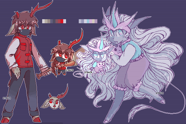yes im posting this at 1 am,,,,,,, practice flat-faced anthro designs. they come with a mini/chibi too